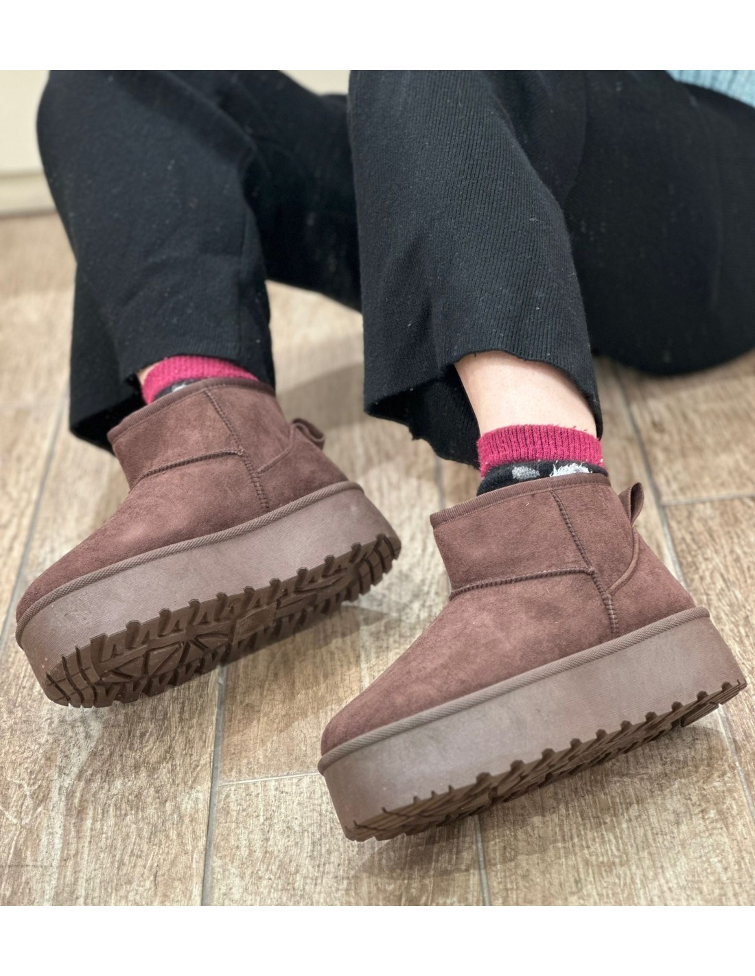 Estos botines tipo plataforma de gamuza son perfectos para lucir un look moderno sin renunciar al confort. Su diseño de caña baja y su interior afelpado brindan una sensación suave y acogedora, ideal para los días fríos o para complementar outfits casuales y urbanos.