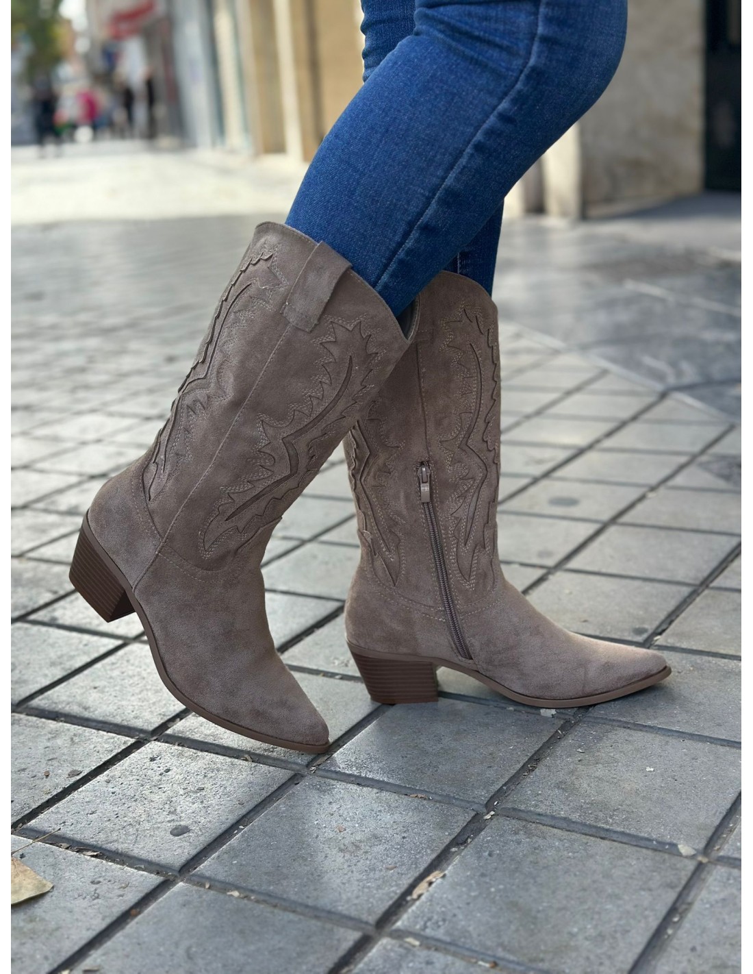 Estas botas son el complemento perfecto para tus outfits diarios o para darle un toque moderno a tu look. Fabricadas en un suave material tipo gamuza, cuentan con un diseño bordado clásico que resalta su estilo cowboy elegante.