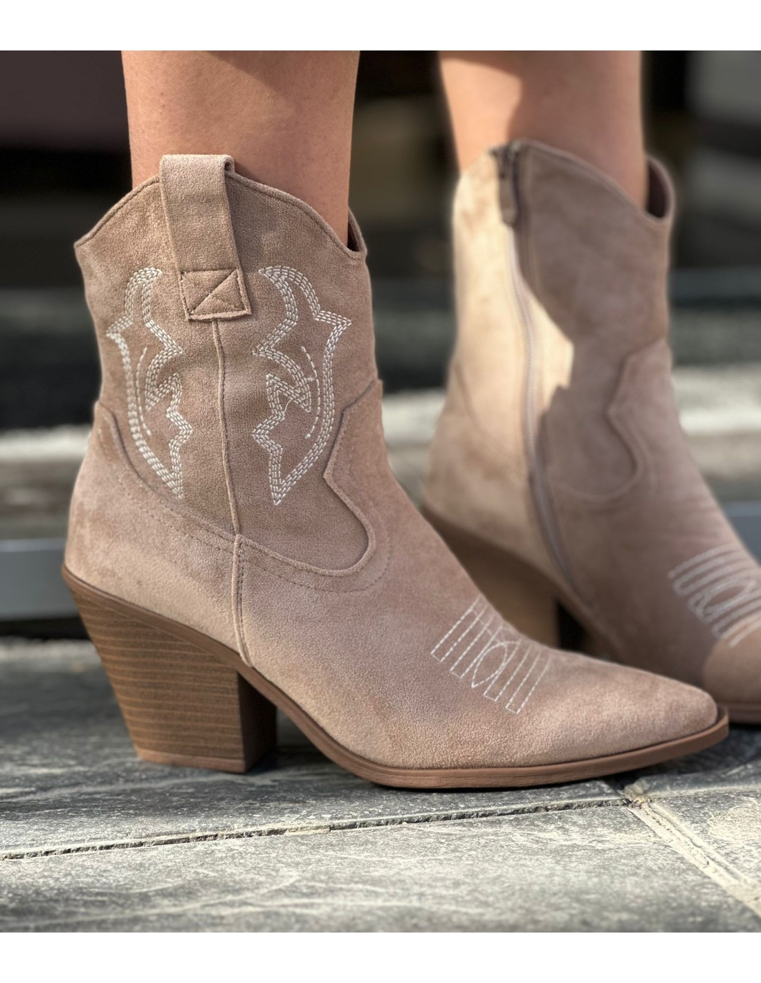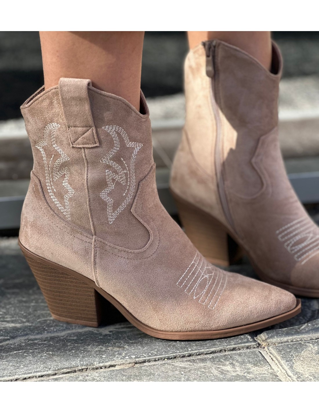 Inspirados en el estilo del lejano oeste, estos botines cowboy aportan un toque audaz y moderno a cualquier look. Confeccionados en gamuza marrón khaki y decorados con un sutil bordado, destacan por su tacón medio y punta afilada que estilizan la figura sin sacrificar la comodidad. Su cierre lateral con cremallera facilita el calce, mientras que su diseño versátil los hace perfectos tanto para jeans como para vestidos bohemios. Son el aliado ideal para quienes aman un estilo con personalidad y un toque rústico-chic.