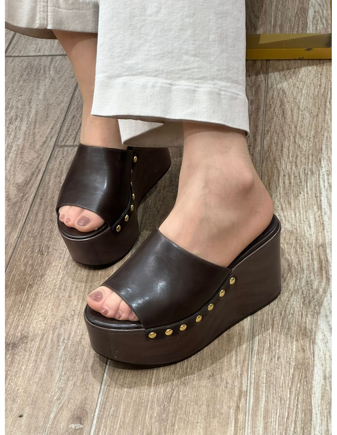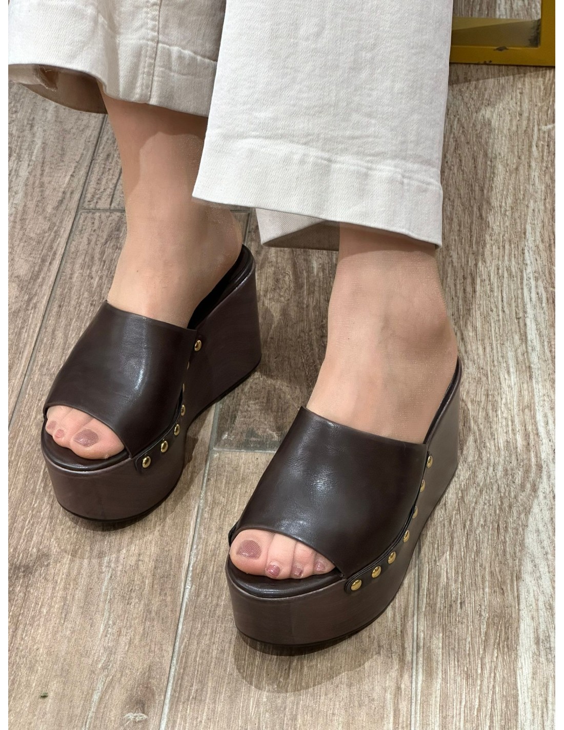 Zuecos Bora Wood Con Plataforma Y Tachuelas